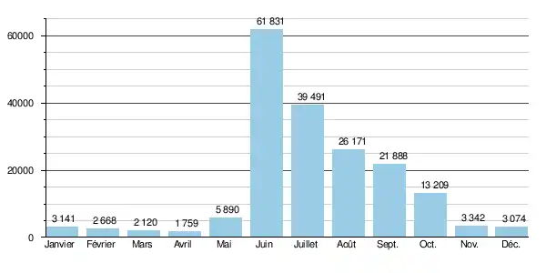 | Krestovaïa | 2 655 | 440 000 | 4 165,00 | 687,00 | mars | 13 439,00 | juin | |||