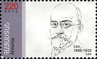 Timbre-poste arménien émis à l'occasion des 150 ans de la naissance de Léo.