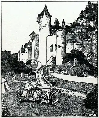 - ↑ Xavier de Langlais, Le Roman du roi Arthur: Merlin et la jeunesse d'Arthur. Les compagnons de la Table ronde Vol. 1 de Le Roman du roi Arthur, éditions d'art les Heures Claires, 1965, p. 86.