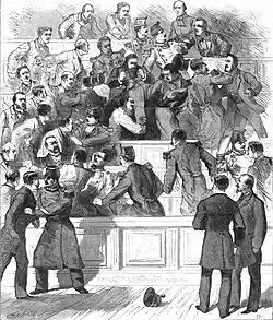 Provoquant un incident à la Chambre des députés, les députés prononcent la censure à son encontre.