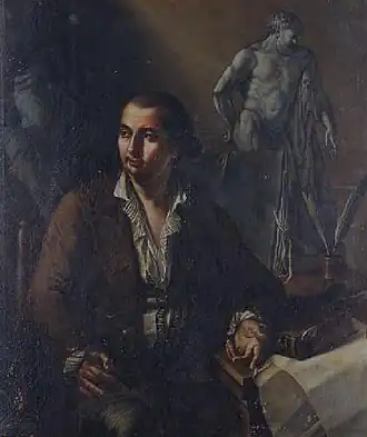 Le portrait ci-joint le montre assis à une table de travail devant une réplique du célèbre Hercule Farnèse.