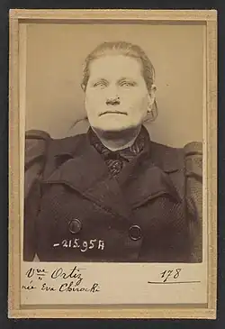 - ↑ Alphonse Bertillon, Chiroki. Eva (veuve Ortiz). 53 ans, née à Grosbitlech (Autriche). Cuisinière. Anarchiste. 21/3/94., (lire en ligne)