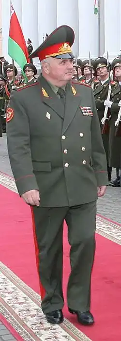 | Distinctions | Liste détaillée Ordre du Service pour la Patrie dans les Forces armées, 2e classe Médaille du Jubilé des « 60 Ans des Forces armées de l'URSS » (en) Médaille du Jubilé des « 50 Ans des Forces armées de l'URSS » (en) Ordre du Service patriotique (en) Médaille du Jubilé des « 70 ans des Forces armées de l'URSS » (en) Médaille « pour service impeccable », 2e classe (d) Médaille « pour service impeccable », 1re classe (d) Médaille « pour service impeccable », 3e classe (d) Médaille « pour renforcer la fraternité militaire » Order of the Homeland Service 3rd Class (d) Médaille des 60 ans de la libération de la Biélorussie des envahisseurs nazis (d) Ordre de l'Amitié Ordre du Service pour la Patrie dans les Forces armées de 3e classe Order of the Homeland Service 2nd Class (d) Médaille du Jubilé des « 60 ans de la victoire dans la Grande guerre patriotique de 1941-1945 » (en) Order of the Homeland Service 1st Class (d) The Order of Military Glory Заслуженный специалист Вооружённых Сил Республики Беларусь (d) |