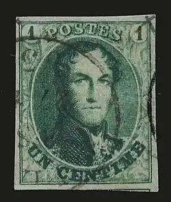 Léopold Ier, roi des Belges, a figuré sur les premières émissions de timbres-poste belges. Il en a été le seul motif de 1849 à sa mort en 1865 ; en 1866 et 1869, les émissions « Petit lion » et « Lion couché et armoiries » fournissent les petites valeurs faciales de complément.