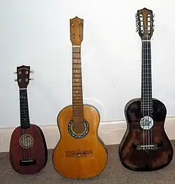 Trois catégories de ukulélés, l'un des instruments joués par Léopoldine Hummel.