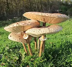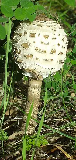 - Lépiote excoriée[2] - Macrolepiota excoriata : assez semblable à la lépiote élevée, elle est plus petite et apprécie les clairières et les prairies.