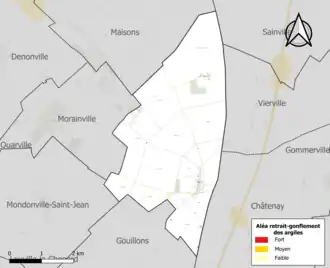 Le retrait-gonflement des sols argileux est susceptible d'engendrer des dommages importants aux bâtiments en cas d’alternance de périodes de sécheresse et de pluie. 0 % de la superficie communale est en aléa moyen ou fort (52,8 % au niveau départemental et 48,5 % au niveau national). Sur les 89 bâtiments dénombrés sur la commune en 2019, 0 sont en aléa moyen ou fort, soit 0 %, à comparer aux 70 % au niveau départemental et 54 % au niveau national. Une cartographie de l'exposition du territoire national au retrait gonflement des sols argileux est disponible sur le site du BRGM[13],[Carte 2].