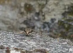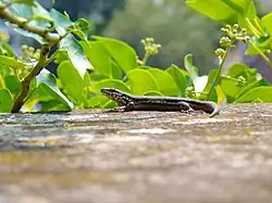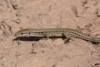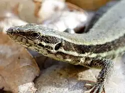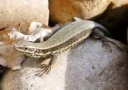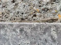 Le Lézard des murailles (Podarcis muralis) est une espèce de Lacertilia (parfois nommés Sauria) de la famille des Lacertidae[1]. Ce petit lézard est originaire d'Europe continentale, plus précisément des régions italiennes et balkaniques[2]. Il est largement présent dans tous les pays d'Europe méditerranéenne ou limitrophes, mais pas dans les îles de Méditerranée. Il a été introduit en Amérique du Nord et en Angleterre[3].