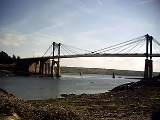 L'histoire de la construction du pont de Lézardrieux est un événement important de l'histoire de Lézardrieux[20]; il fut ouvert à la circulation le . Auparavant il fallait faire le détour par Pontrieux ou emprunter un bac pour passer d'une rive à l'autre de la ria du Trieux.