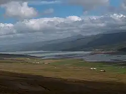 Vue du Lögurinn au niveau du pont de la route 1 à hauteur d'Egilsstaðir | ||
