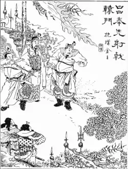Portrait de Lü Bu, archer. D'après une édition de l'Histoire des Trois Royaumes de la dynastie Qing. | ||