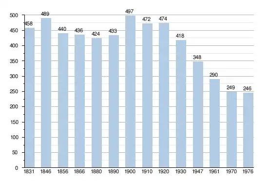 - Sources:INS, Rem:1831 jusqu'en 1970=recensements, 1976= nombre d'habitants au 31 décembre