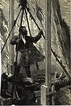 Pencroff et Harbert Brown (couché), illustration extraite de l'édition originale.