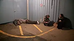 Chaque soir, les veilleurs de l'Abri PC, un des trois centres d’hébergement d'urgence, ont la lourde tâche de « trier les pauvres » : personnes âgées, femmes et enfants d’abord, hommes ensuite. Après une bousculade parfois violente, seuls 50 « élus » sont admis à pénétrer dans ce souterrain de la protection civile. Dans cette cour des miracles, les visages crispés se détendent. Le temps d’une nuit de répit, ils ont une collation, une douche et un lit propre. Entre les communautés s’établit une cohabitation qui produit des moments de joie et d’échange, mais aussi des tensions qui peuvent éclater à tout moment.