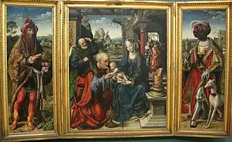 Joos van Cleve est l'un des premiers artistes à s'être imprégné des enseignements de Léonard de Vinci, dont est clairement inspiré le mage le plus âgé agenouillé au centre de la composition, tout comme le rendu atmosphérique. Les rochers imaginaires à l'arrière-plan rappellent les paysages de Joachim Patinier, un peintre flamand avec qui Joos van Cleve collabore régulièrement. Le triptyque présente une mise en page resserrée et une préciosité maniériste[1].