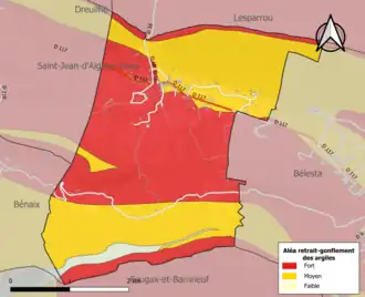 Les mouvements de terrains susceptibles de se produire sur la commune sont soit des chutes de blocs, soit des glissements de terrains, soit des effondrements liés à des cavités souterraines, soit des mouvements liés au retrait-gonflement des argiles. Près de 50 % de la superficie de l’Ariège est concernée par l'aléa retrait-gonflement des argiles, dont la commune de l'Aiguillon[36]. L'inventaire national des cavités souterraines permet par ailleurs de localiser celles situées sur la commune[37].