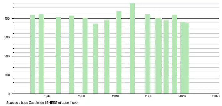 - ↑ Fiches Insee - Populations de référence de la commune pour les années 2006, 2007, 2008, 2009, 2010, 2011, 2012, 2013, 2014, 2015, 2016, 2017, 2018, 2019, 2020, 2021 et 2022.