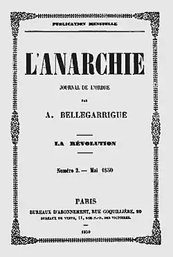Fondé, rédigé, financé et distribué par le jeune Anselme Bellegarrigue, L'Anarchie, journal de l'ordre est un journal anarchiste publié en France en avril et mai 1850[1],[2],[3].