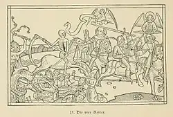 Les Quatre Cavaliers de l'Apocalypse (c. 1497-1498)[3] se référant à Ap 6,1-8[4], est souvent considérée comme la gravure la plus célèbre.