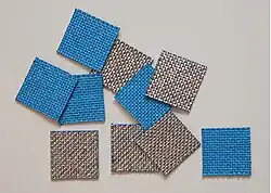 L'Arc de Triomphe est dans 25 000 mètres carrés de tissu très fin argent bleuté, tendu par 3 000 mètres de corde recyclable en polypropylène rouge[4]. Le tissu, fabriqué dans le nord de l'Allemagne, est recyclable, constitué de polypropylène sur lequel il a été vaporisé de l'aluminium.