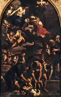 - ↑ Le créateur de quelques-unes des précieuses copies en mosaïque des retables du Vatican, dont celui du Guerchin, fut Pietro Paolo Cristofari (1658-1743), un habile mosaïste romain au service de la Fabrique de saint-Pierre pendant longtemps.