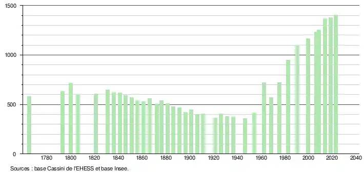 - ↑ Fiches Insee - Populations de référence de la commune pour les années 2006, 2007, 2008, 2009, 2010, 2011, 2012, 2013, 2014, 2015, 2016, 2017, 2018, 2019, 2020, 2021 et 2022.
