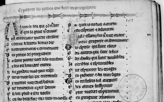 - Première page du manuscrit, Gallica. Le manuscrit 25407 de la Bibliothèque nationale de France est le seul connu de l'Espurgatoire.