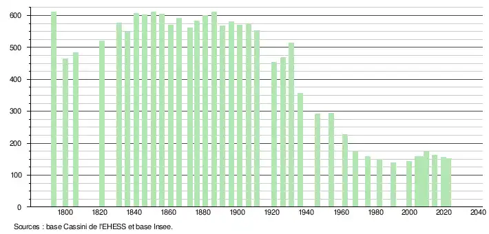 - ↑ Fiches Insee - Populations de référence de la commune pour les années 2006, 2007, 2008, 2009, 2010, 2011, 2012, 2013, 2014, 2015, 2016, 2017, 2018, 2019, 2020, 2021 et 2022.