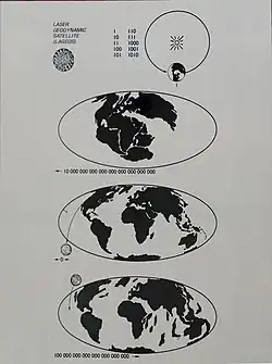 LAGEOS-1 est conçu par la NASA et est lancé le par un lanceur Delta[3]. Il contient une plaque conçue par Carl Sagan portant un message adressé aux humains et aux autres potentiels êtres vivants du futur lointain, avec des représentations de la Terre correspondant à trois ères différentes : il y a 268 millions d'années, de nos jours et dans (environ) 8 millions d'années, date estimée de la chute du satellite[1].