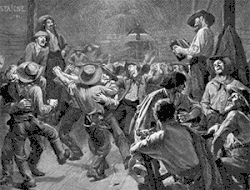 Ces populations diverses et mobiles, plongées dans un environnement relativement anarchique, sont donc moins susceptibles de se conformer aux conventions sociales. Par exemple, en raison du sex-ratio déséquilibré, ce sont souvent des hommes qui jouent les rôles traditionnellement attribués aux femmes dans les sphères sociales et domestiques. Le travestissement et les danses entre hommes sont alors courants dans les bals masqués lors desquels certains hommes jouent des rôles traditionnellement féminins en allant jusqu'à porter des vêtements pour femme[4]. Dans son étude Arresting dress, cross-dressing in 19th-century San Francisco, Clare Sears décrit également de nombreux cas de femmes ayant fait le choix de porter des vêtements masculins dans l'espace public pour avoir accès à une plus grande liberté sociale et économique et être plus en sécurité[5].