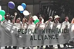 Le sida a touché brutalement la communauté gay de San Francisco dès le tout début des années 1980[34],[35]. 15 548 hommes gays meurent du sida à San Francisco avant l'introduction des trithérapies dans la seconde moitié des années 1990[36]. Randy Shilts, qui décède lui-même du sida par la suite, est l'un des principaux journalistes à s'intéresser au sida[37]. Il est embauché comme correspondent national par le San Francisco Chronicle en 1981, devenant le premier journaliste gay à traiter d'un sujet « gay » dans la presse national[38]. En 1984, le militant bisexuel David Lourea (en) convainc le département de santé publique de San Francisco Department de reconnaître les hommes bisexuels dans les statistiques du sida, après deux ans d'efforts[24]. En 2011, le documentaire We Were Here couvre la crise du sida dans les 1980 et 1990 à San Francisco[36].