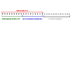 On a, dans le buffer de taille n=18, comme expliqué précédemment n-LS=9 zéros suivis des LS=9 premiers caractères de S (cf. Image1).