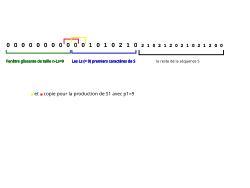 L'entier n-Ls est la taille de la fenêtre glissante (initialisée avec des zéros comme indiqué précédemment). Pour trouver les Si, on réalise à chaque itération une production exhaustive de la sous-séquence de S la plus longue possible en prenant le contenu de la fenêtre glissante comme préfixe, avec ici la contrainte que la longueur de la séquence produite ne peut dépasser LS.
