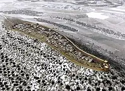 Il y avait peut-être environ quatre-vingt-dix à cent vingt maisons sur l'ensemble du site, abritant une population de 450 à 840 personnes[7].