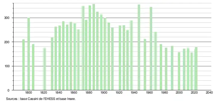 - ↑ Fiches Insee - Populations de référence de la commune pour les années 2006, 2007, 2008, 2009, 2010, 2011, 2012, 2013, 2014, 2015, 2016, 2017, 2018, 2019, 2020, 2021 et 2022.