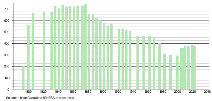 - ↑ Fiches Insee - Populations de référence de la commune pour les années 2006, 2007, 2008, 2009, 2010, 2011, 2012, 2013, 2014, 2015, 2016, 2017, 2018, 2019, 2020, 2021 et 2022.