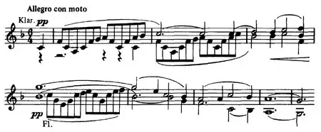 Le début en 6/4 avec le flot continu des croches préfigure l'ouverture de l'opéra L'Or du Rhin de Wagner (en 1854).