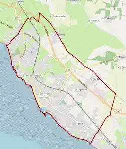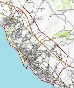 L'occupation des sols de la commune, telle qu'elle ressort de la base de données européenne d’occupation biophysique des sols Corine Land Cover (CLC), est marquée par l'importance des territoires artificialisés (52 % en 2018), en augmentation par rapport à 1990 (46,3 %). La répartition détaillée en 2018 est la suivante : zones urbanisées (52 %), zones agricoles hétérogènes (33,2 %), prairies (12,1 %), terres arables (2,6 %), zones humides côtières (0,2 %)[15]. L'évolution de l’occupation des sols de la commune et de ses infrastructures peut être observée sur les différentes représentations cartographiques du territoire : la carte de Cassini (XVIIIe siècle), la carte d'état-major (1820-1866) et les cartes ou photos aériennes de l'IGN pour la période actuelle (1950 à aujourd'hui)[Carte 1].