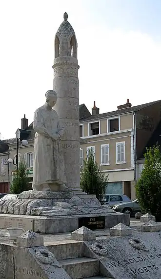 En , Albert Lambert, maire de La Châtre, signe un contrat avec Ernest Nivet, ancien élève d'Auguste Rodin et natif de Levroux (commune du même département), pour qu’il réalise la sculpture du monument aux morts que la ville prévoit d'ériger[1]. Elle est livrée huit mois plus tard. Sa maquette avait été exposée en 1923 au salon des artistes français à Paris où elle avait obtenu une médaille d'or[1]. Le monument est inauguré le [2].