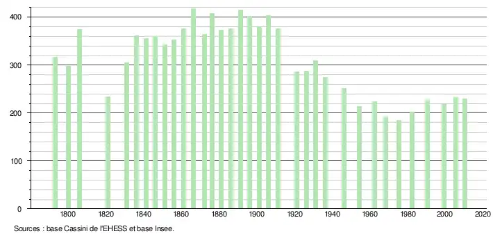 - ↑ Fiches Insee - Populations légales de la commune pour les années 20062007 2008 2009 2010 20112012201320142015 2016 .