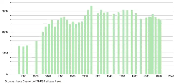 - ↑ Fiches Insee - Populations de référence de la commune pour les années 2006, 2007, 2008, 2009, 2010, 2011, 2012, 2013, 2014, 2015, 2016, 2017, 2018, 2019, 2020, 2021 et 2022.