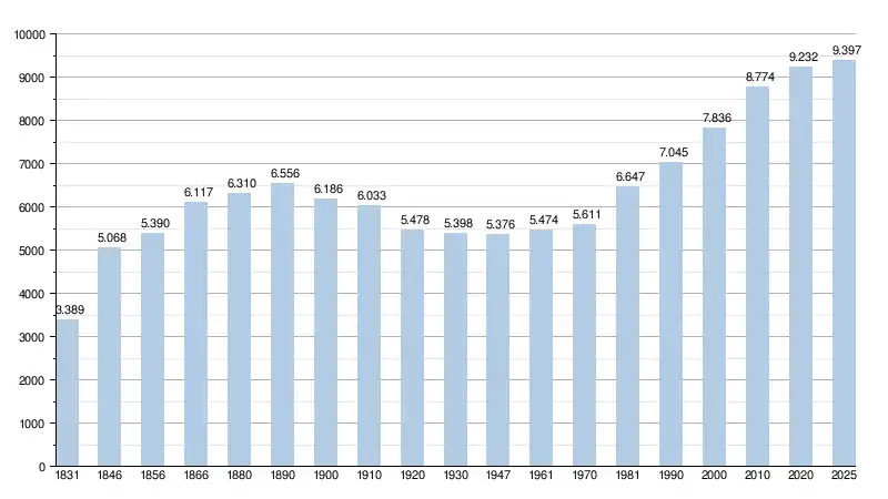 - Source: DGS, de 1831 à 1981=recensements population ; à partir de 1990 = nombre d'habitants chaque 1er janvier[1]