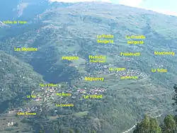 - ↑ Lexique Français : Francoprovençal du nom des communes de Savoie : Lé Kmoune in Savoué, Bruxelles, Parlement européen, , 43 p. (ISBN 978-2-7466-3902-7, lire en ligne), p. 19Préface de Louis Terreaux, membre de l'Académie de Savoie, publié au Parlement européen à l'initiative de la députée Malika Benarab-Attou.