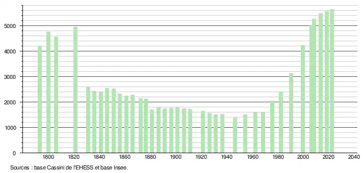 - ↑ Fiches Insee - Populations de référence de la commune pour les années 2006, 2007, 2008, 2009, 2010, 2011, 2012, 2013, 2014, 2015, 2016, 2017, 2018, 2019, 2020, 2021 et 2022.