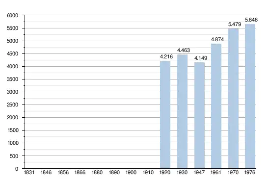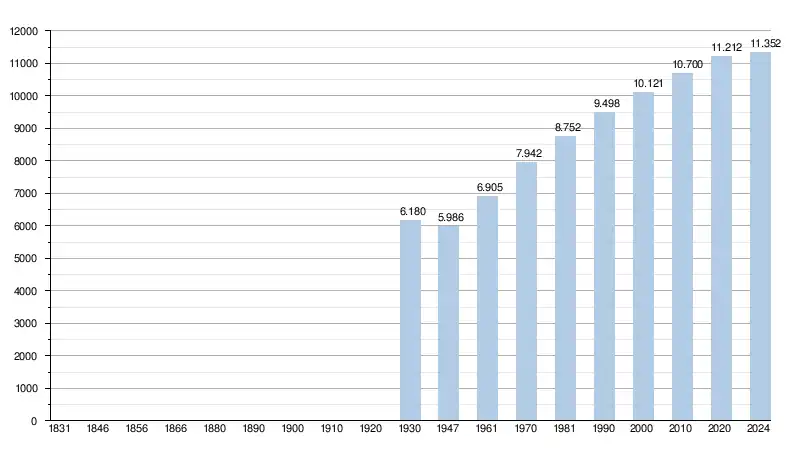 Les chiffres des années 1831 à 1970 tiennent compte des chiffres des anciennes communes fusionnées.