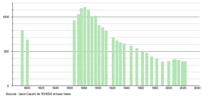 - ↑ Fiches Insee - Populations de référence de la commune pour les années 2006, 2007, 2008, 2009, 2010, 2011, 2012, 2013, 2014, 2015, 2016, 2017, 2018, 2019, 2020, 2021 et 2022.