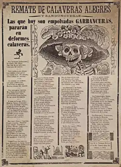 La Catrina est un personnage populaire de la culture mexicaine ; il s'agit d'un squelette féminin vêtu de riches habits et portant généralement un chapeau, elle est inspirée de la Calavera garbancera dont on ne voit, sur l'illustration originale, que le buste.