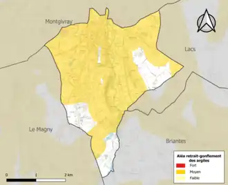 Le retrait-gonflement des sols argileux est susceptible d'engendrer des dommages importants aux bâtiments en cas d’alternance de périodes de sécheresse et de pluie. 81 % de la superficie communale est en aléa moyen ou fort (84,7 % au niveau départemental et 48,5 % au niveau national). Sur les 1 894 bâtiments dénombrés sur la commune en 2019, 1784 sont en aléa moyen ou fort, soit 94 %, à comparer aux 86 % au niveau départemental et 54 % au niveau national. Une cartographie de l'exposition du territoire national au retrait-gonflement des sols argileux est disponible sur le site du BRGM[17],[18].