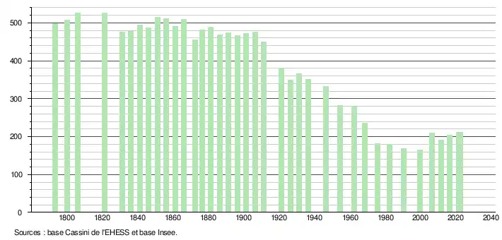 - ↑ Fiches Insee - Populations de référence de la commune pour les années 2006, 2007, 2008, 2009, 2010, 2011, 2012, 2013, 2014, 2015, 2016, 2017, 2018, 2019, 2020, 2021 et 2022.