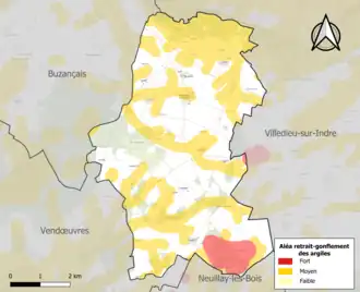 Le retrait-gonflement des sols argileux est susceptible d'engendrer des dommages importants aux bâtiments en cas d’alternance de périodes de sécheresse et de pluie. 48,1 % de la superficie communale est en aléa moyen ou fort (84,7 % au niveau départemental et 48,5 % au niveau national). Sur les 63 bâtiments dénombrés sur la commune en 2019, 36 sont en aléa moyen ou fort, soit 57 %, à comparer aux 86 % au niveau départemental et 54 % au niveau national. Une cartographie de l'exposition du territoire national au retrait gonflement des sols argileux est disponible sur le site du BRGM[23],[24].